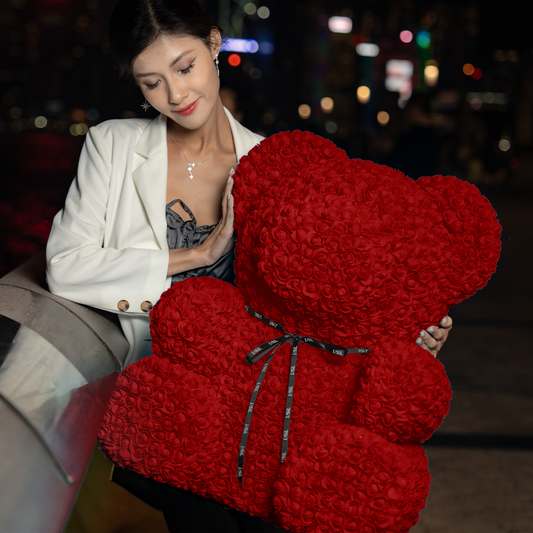 With a significantly longer lifespan compared to ordinary fresh flowers, LéSiL Rose Bears offer a lasting symbol of romance and charm. Handcrafted with the finest artificial roses, each petal is meticulously arranged to form a luxurious and timeless gift. Available in various colours, each bear is a symbol of love and sophistication, making it the perfect expression of your deepest emotions.